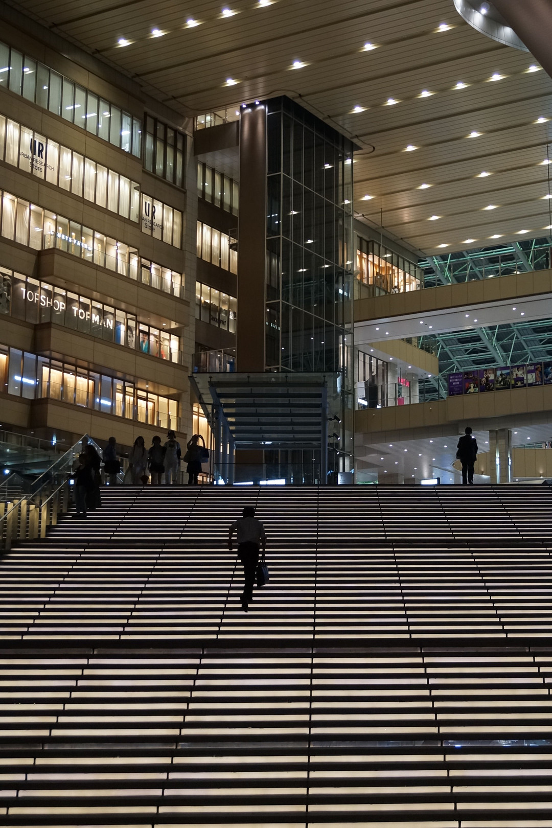 大阪駅に向かう階段を駆け登る人を引いて撮りました