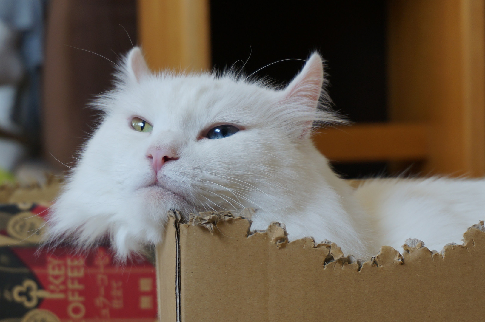 先日訪れたネコカフェでパシャ! オッドアイが綺麗なアメリカンカールくん なぜかこの子だけ顔認証してた(笑)