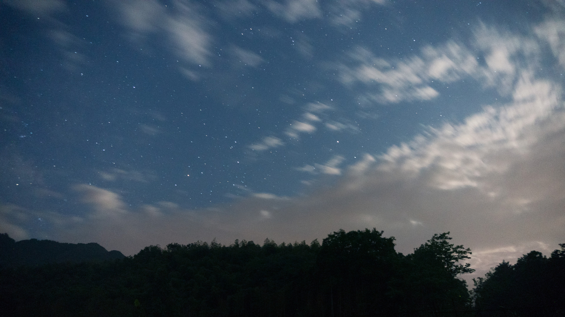 辺りは真っ暗でしたが、霧も晴れて雲間から 星の光がキラキラしてました。 ちょっとホワイトバランスがずれてたので、雲をグレー指定で現像しました。