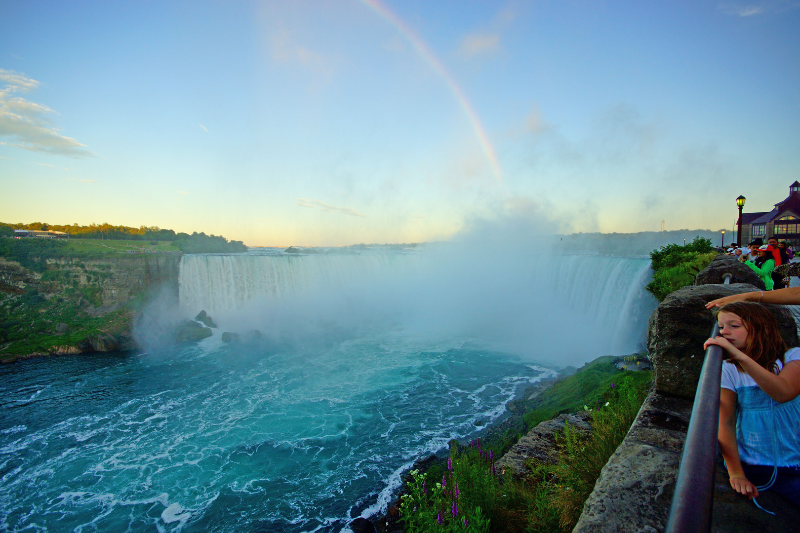 ナイアガラの滝、カナダ側にある通称カナダ滝 一日中舞っている滝つぼからの水しぶきによって虹が出ていました 昨年のアメリカ横断旅行より、カナダ・オンタリオにて