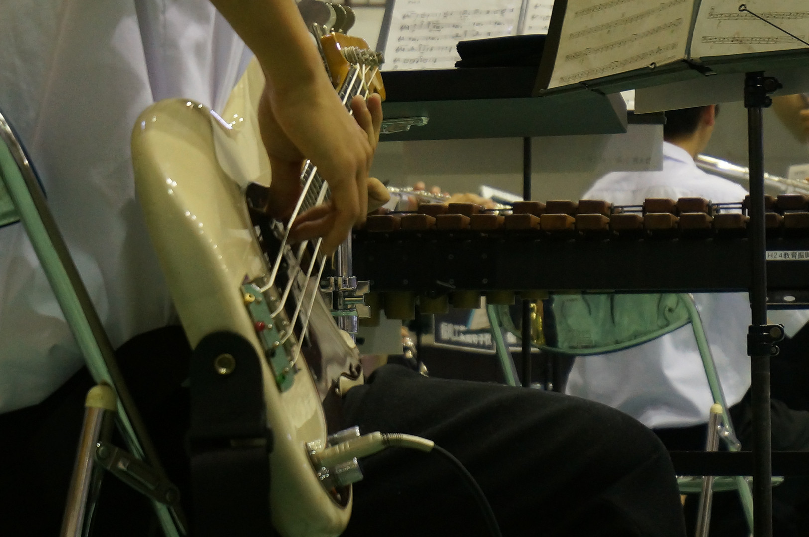 吹奏楽部 部員の手先に注目