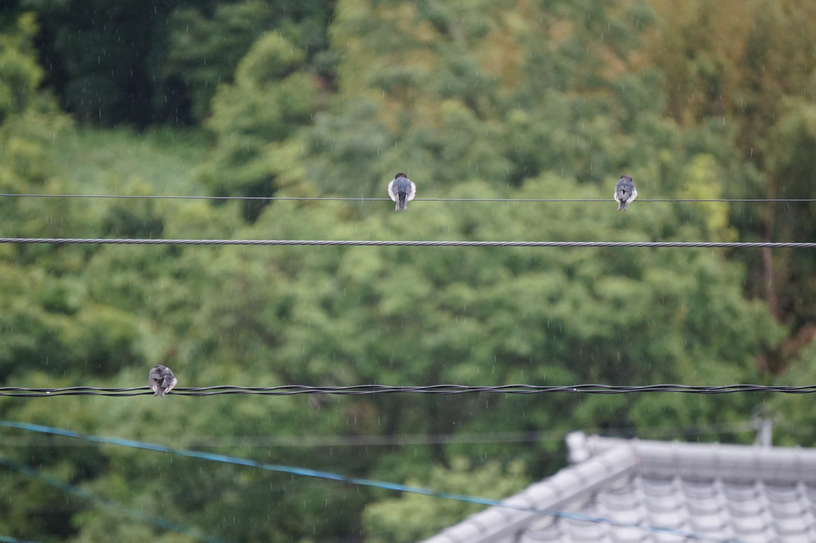 窓の外から、賑やかな鳴き声。見ると3羽のツバメたちが飛んでは止まり、飛んでは止まりしてました。巣立ったばかりの若鳥なのでしょうね。 そういえば、うちのベランダにモズの若鳥が来たこともありました。
