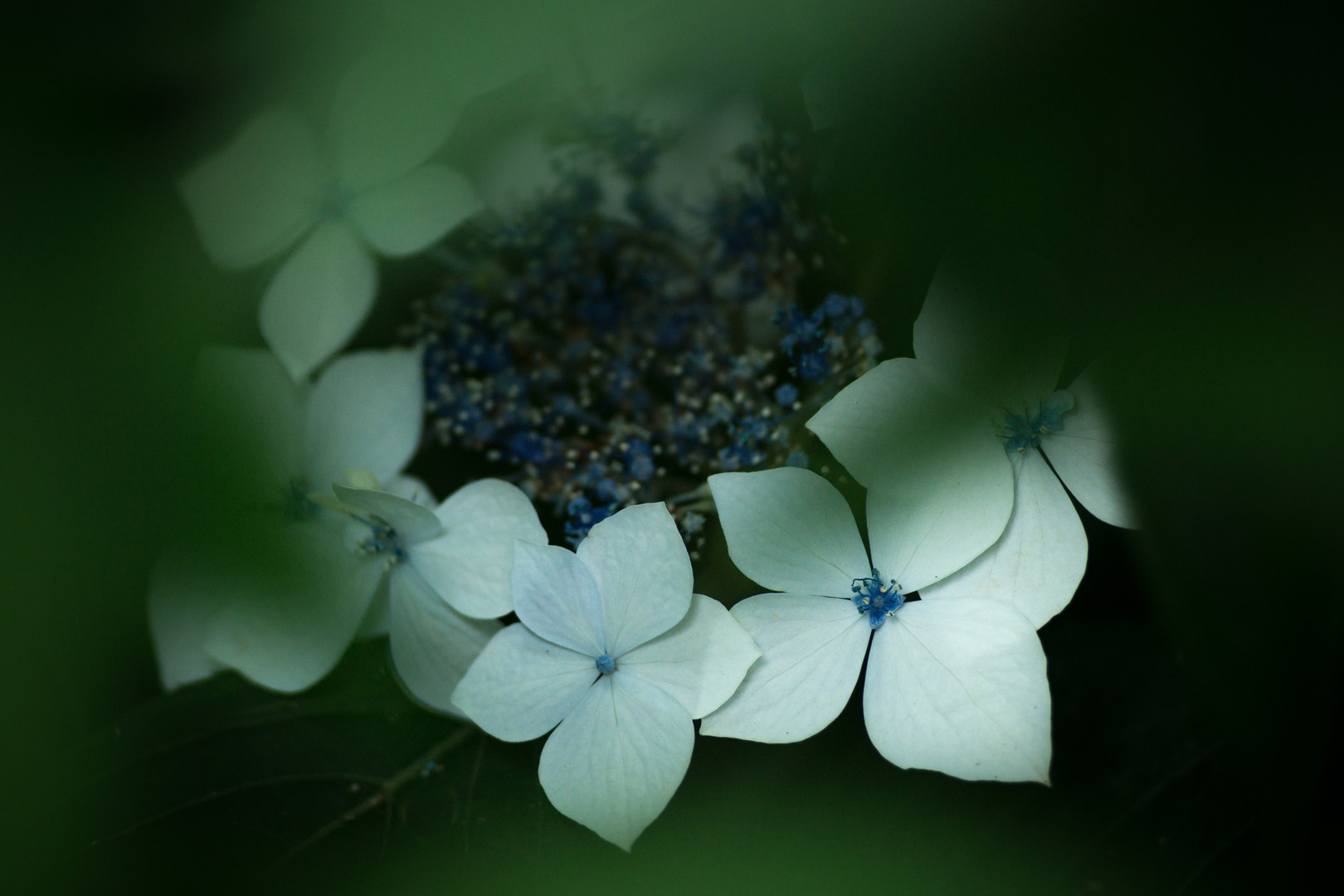 うっそうとした茂みに一輪の紫陽花が咲いていました。