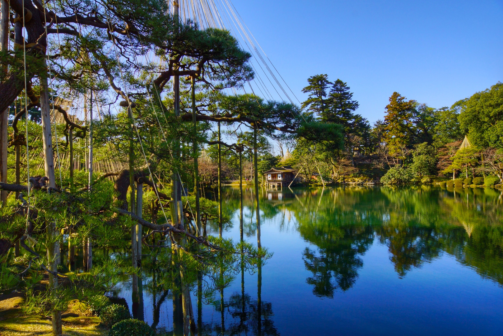 金沢の名庭園 兼六園にて。 スカッと晴れ、風も少なく水面に映った景色が綺麗に撮れました。