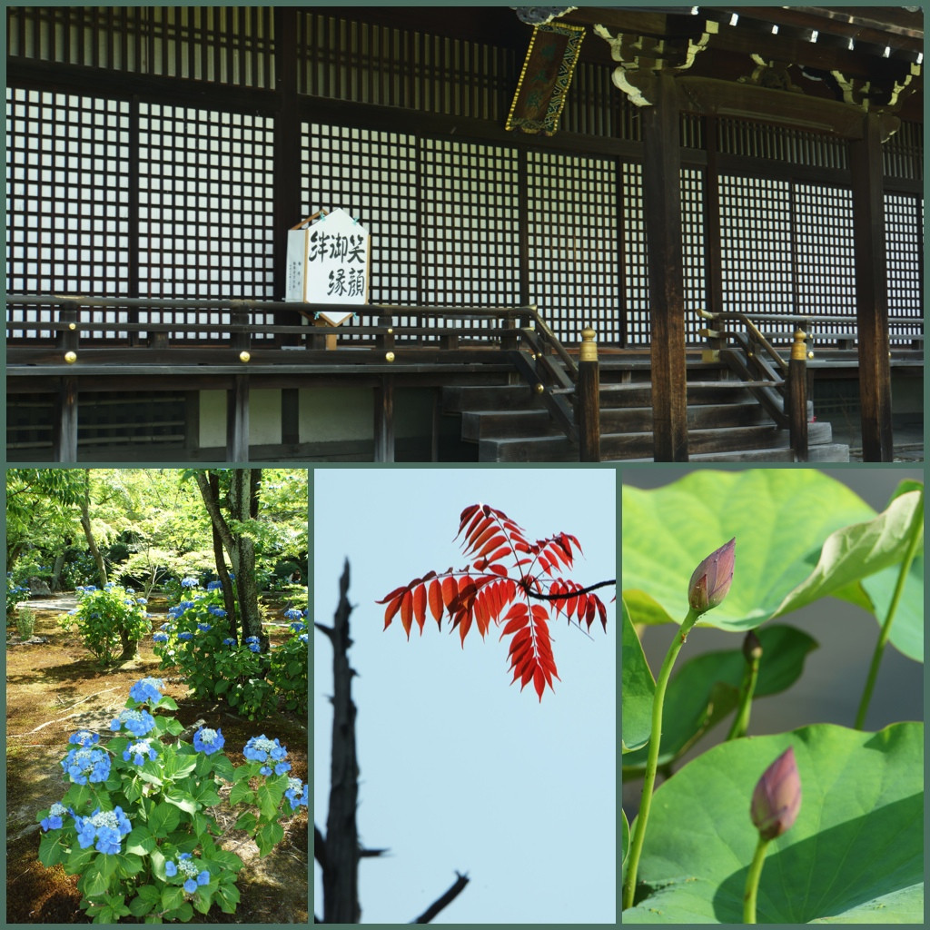 そうだ京都行こう!の2008年夏バージョンのここ勧修寺のポスターのキャッチコピーに、「きれいなものを目にする」には、ちょっとした努力が要る、とありました。確かに、梅雨の合間の暑い最中で汗をかきながらでしたが、家にいたのでは見られないものがありますね。ポスターの景色を見るには、もう少し後が良いようです。