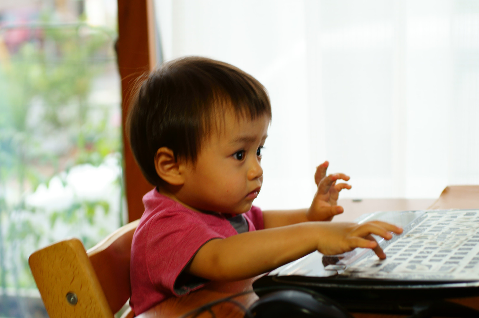 最近よくコンピュータを触っていると聞いたので使わせてみると...。ブラインドタッチでコンピュータを操っているように見えます!