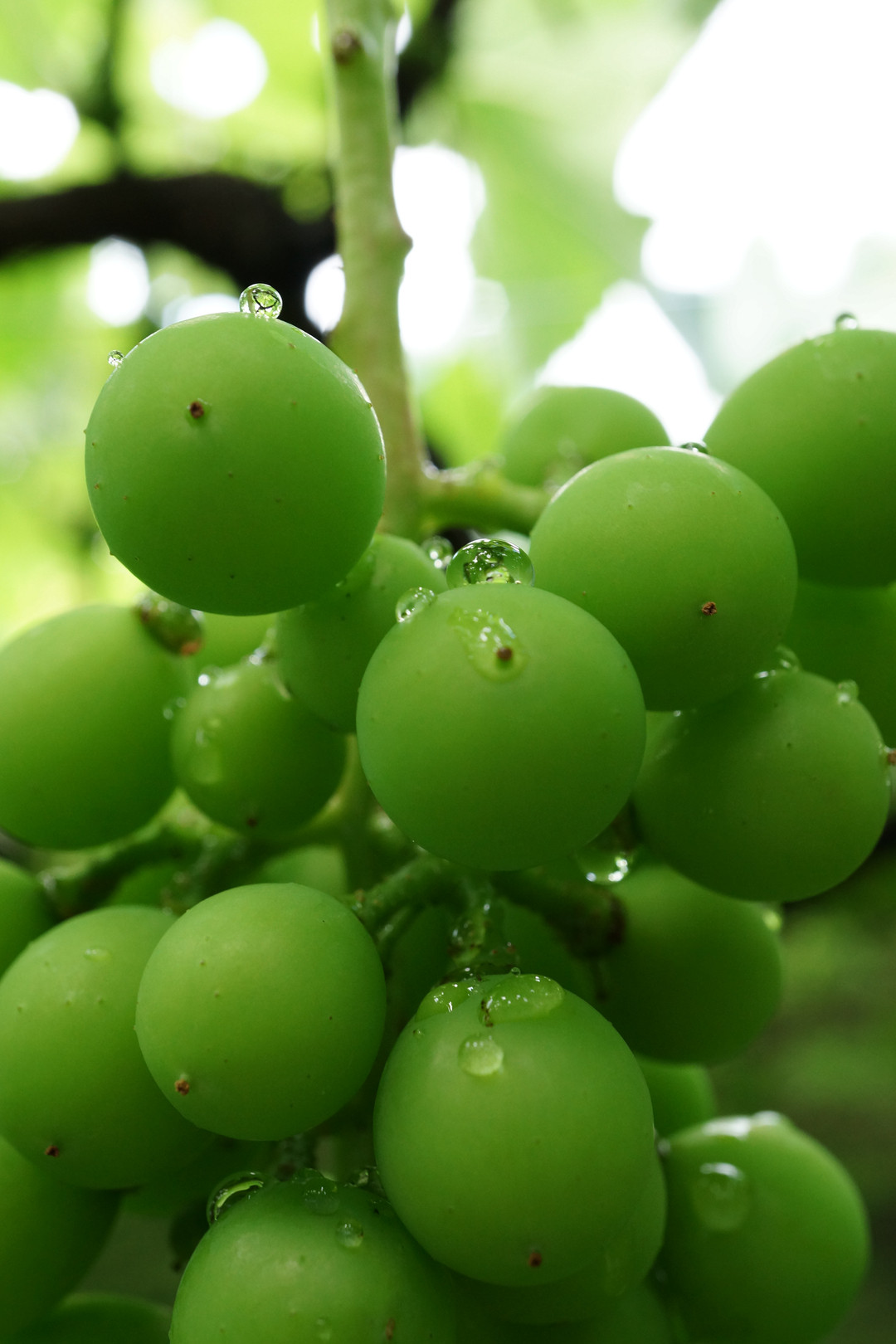 雨上がりに巨峰の房に乗った水滴を狙って撮りました。