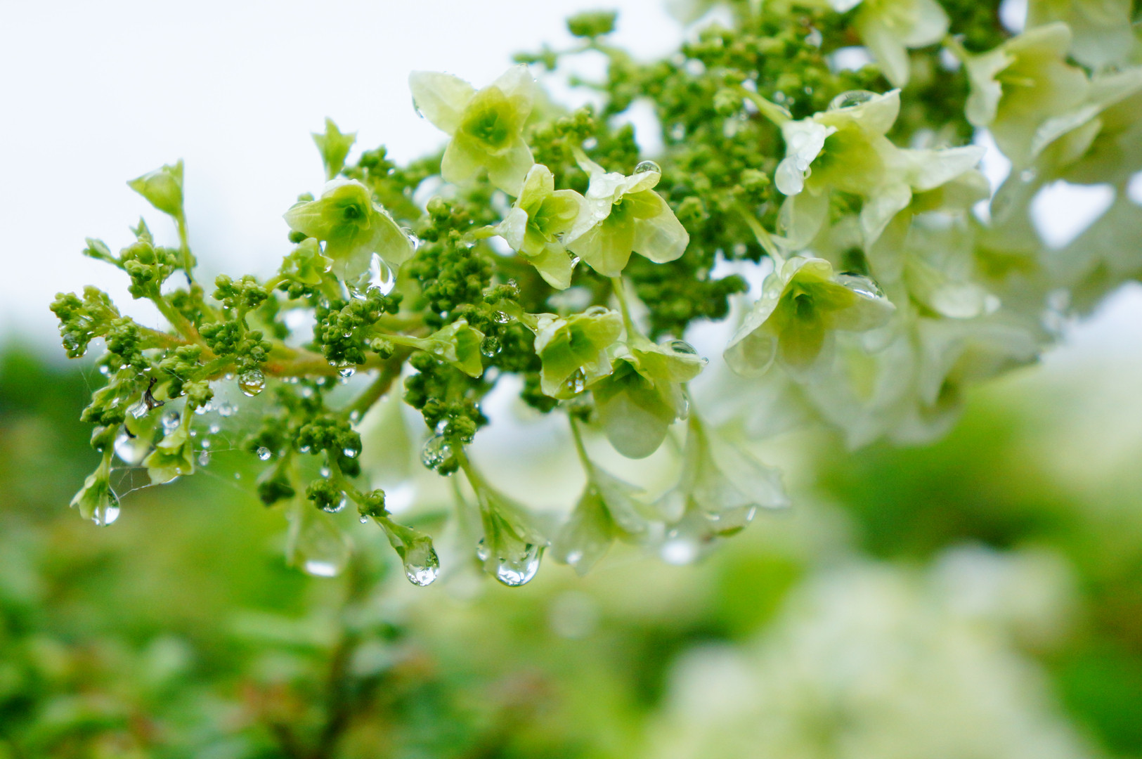 雨上がりのカシワバアジサイ。 雫を携えて。