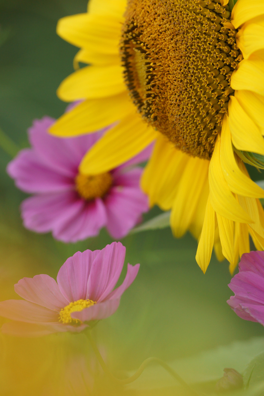 ひまわり畑に、早くもコスモスが咲いていました。