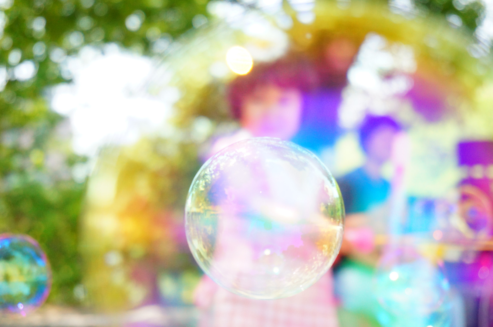 梅雨の晴れ間に公園で子供と。シャボン玉は子が生まれてからコンデジ時代から何度も挑戦してきたテーマですが、やっと気に入る一枚が手に入りました。