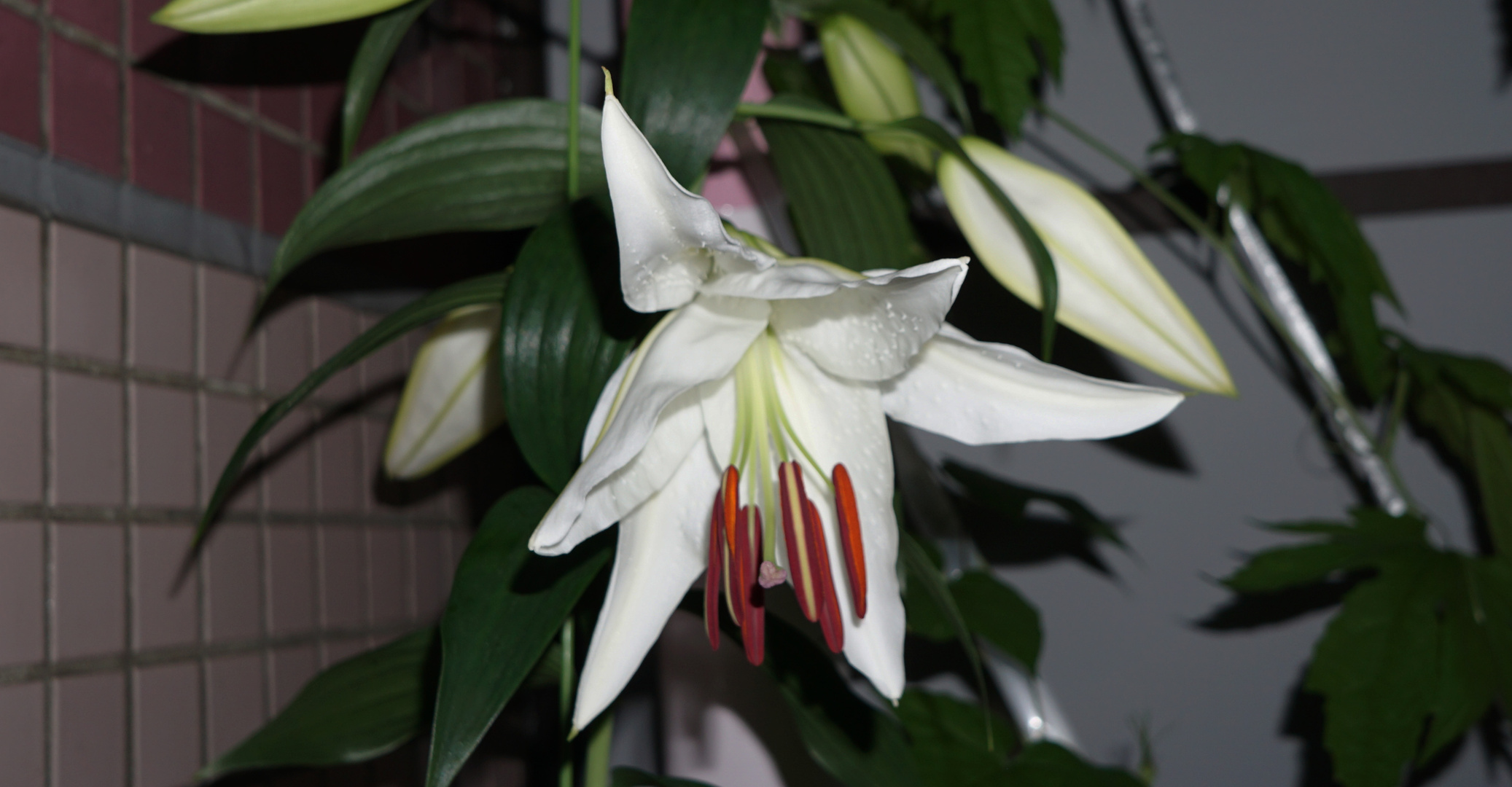 蕾ができてからなかなか花が開かなかったゆりが 夜、ついに開花。 まだつぼみがいくつもあるのでこれからも楽しみです。