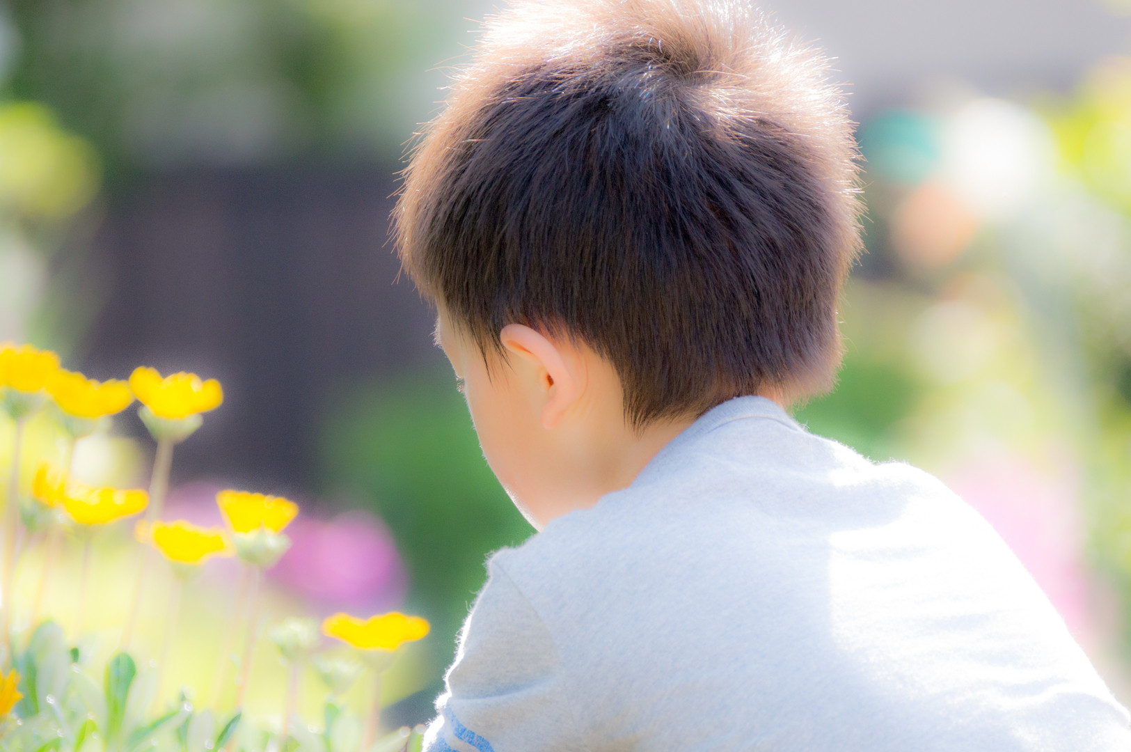 朝日が差し込み、花がきらめいていました