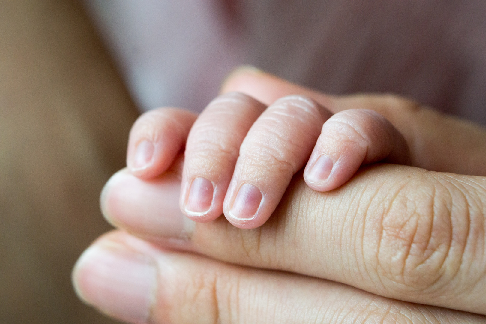 生後0日の手と母の手の大きさ比べ