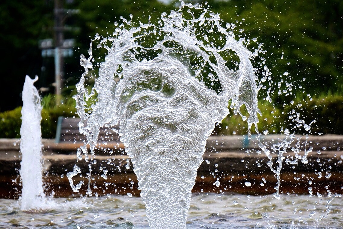 暑いですね。 噴水を見ていると 涼しい気分になりますよ〜。