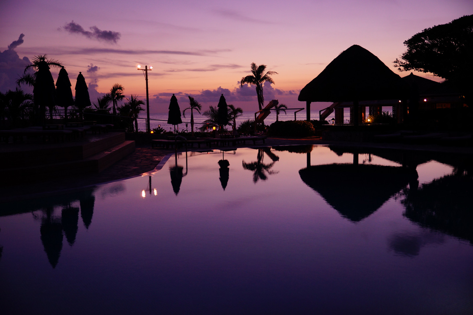 7月の初めに宮古島旅行に行きました。 夕日を撮影した後にホテルのプールサイドで撮影。
