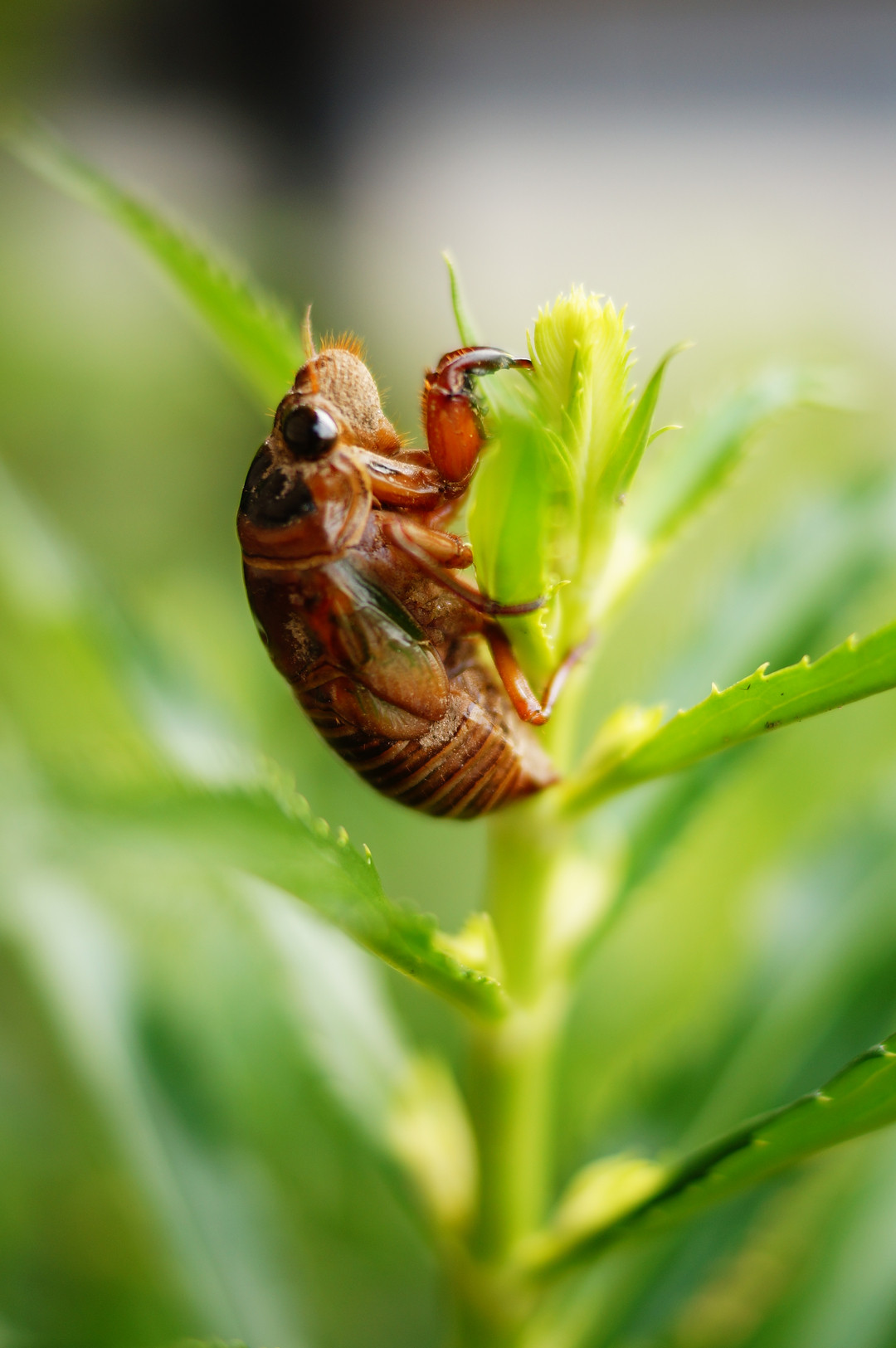 思ったところにピントが来ませんでした。 最初セミの抜け殻かと思いましたが、孵化直前の幼虫でしょうか。