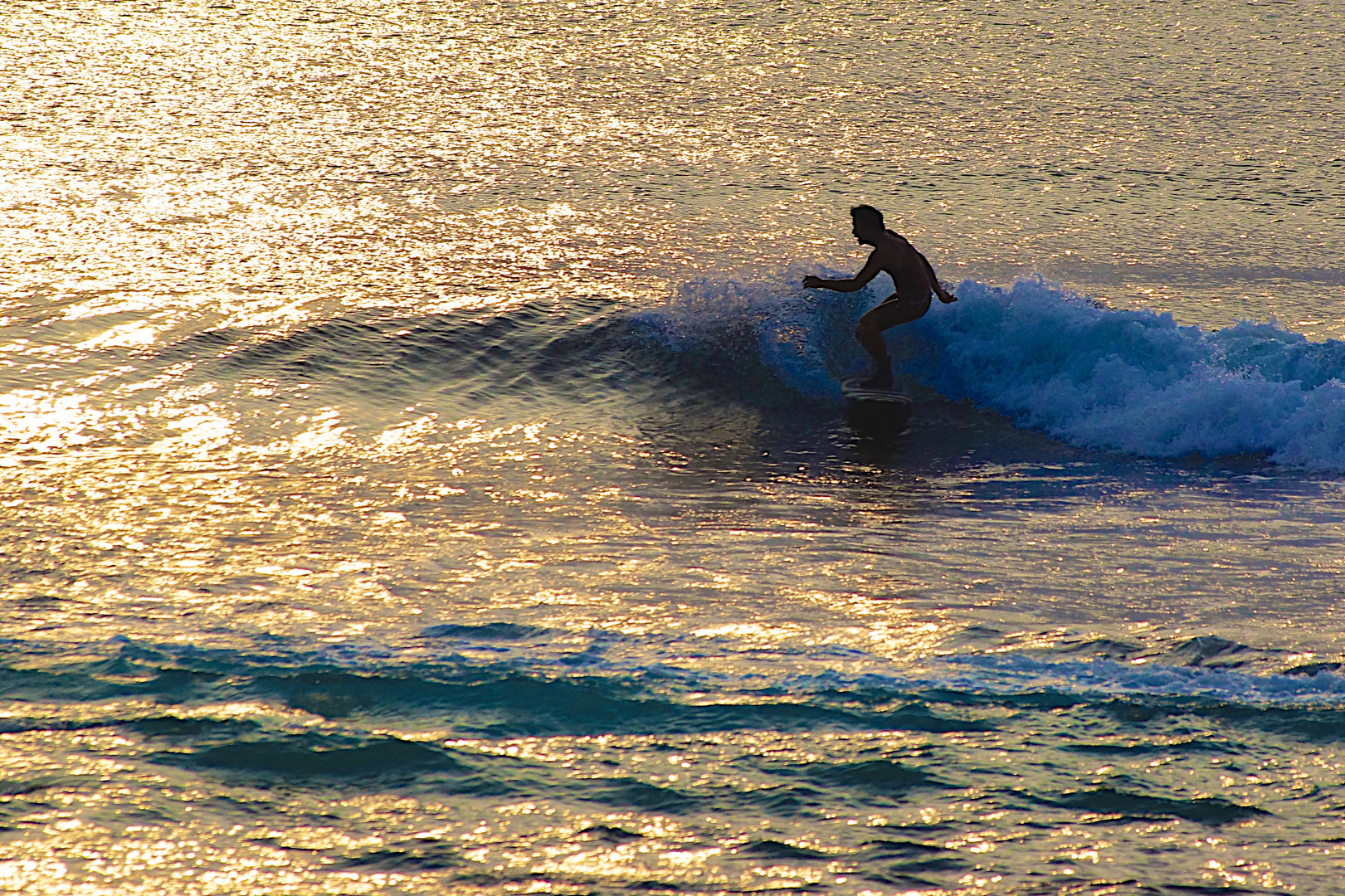 朝陽輝く中、一人のサーファー。 かっこいい!