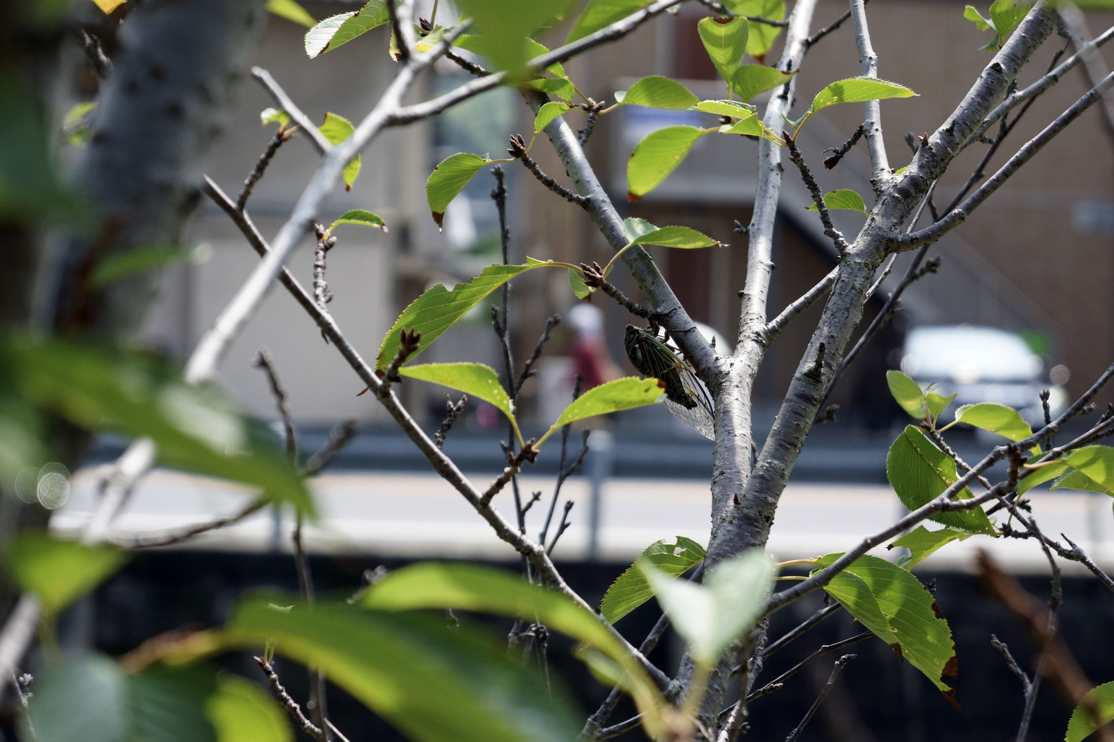 細い小枝の日陰で、懸命に叫んでいました。