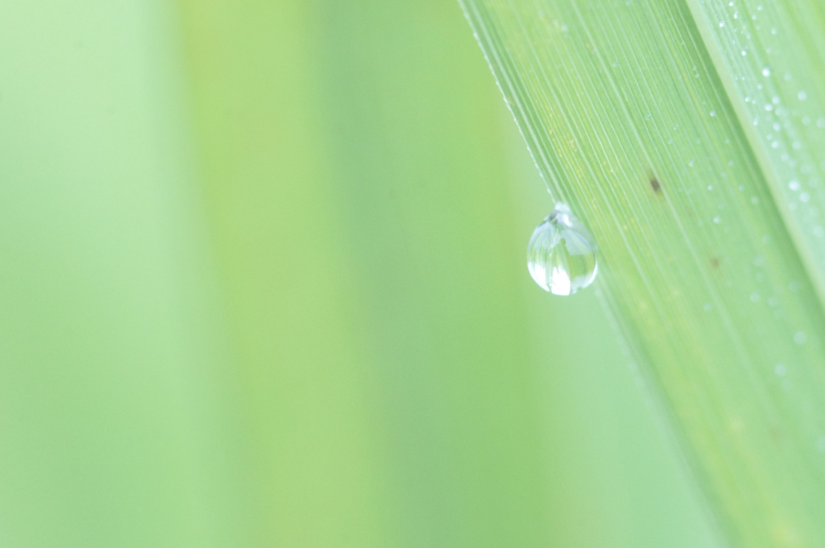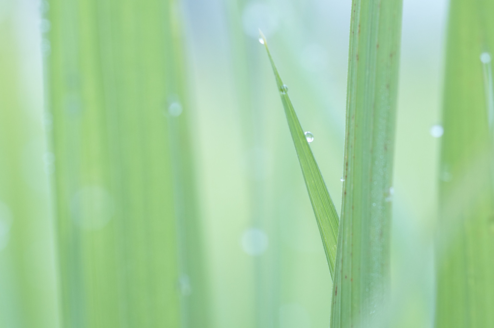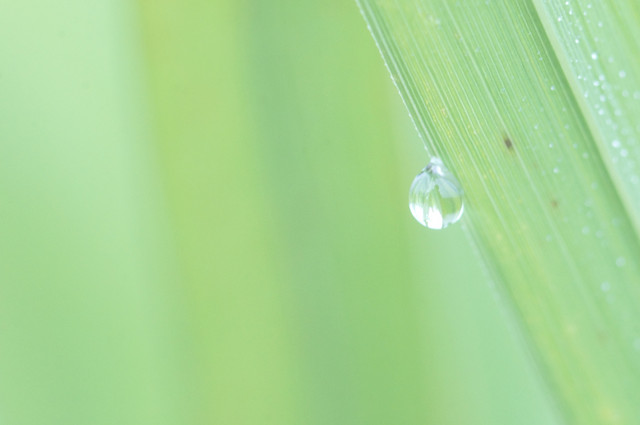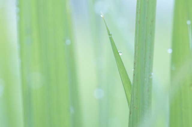 田んぼの稲に朝露が。