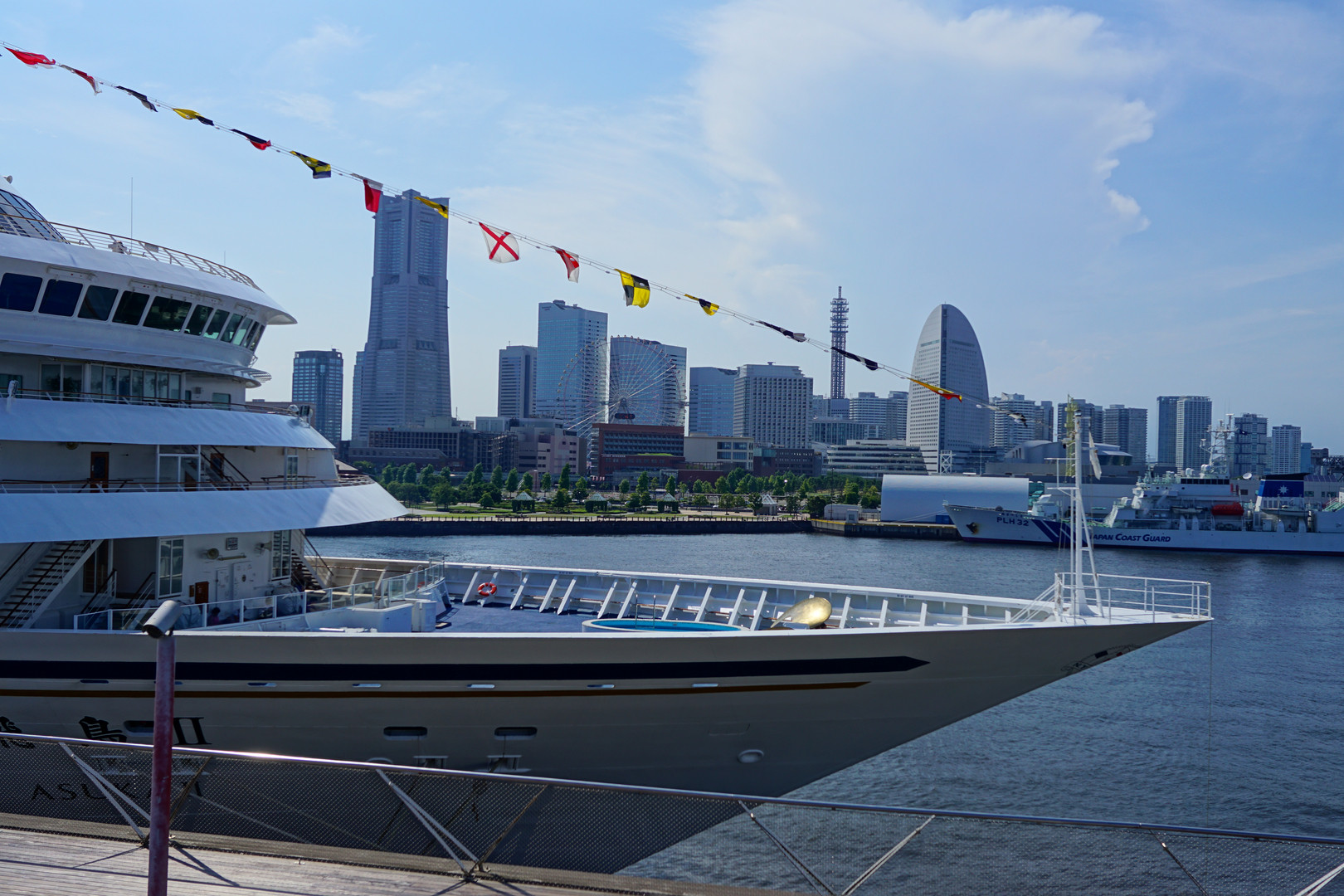 青空と船とみなとみらい