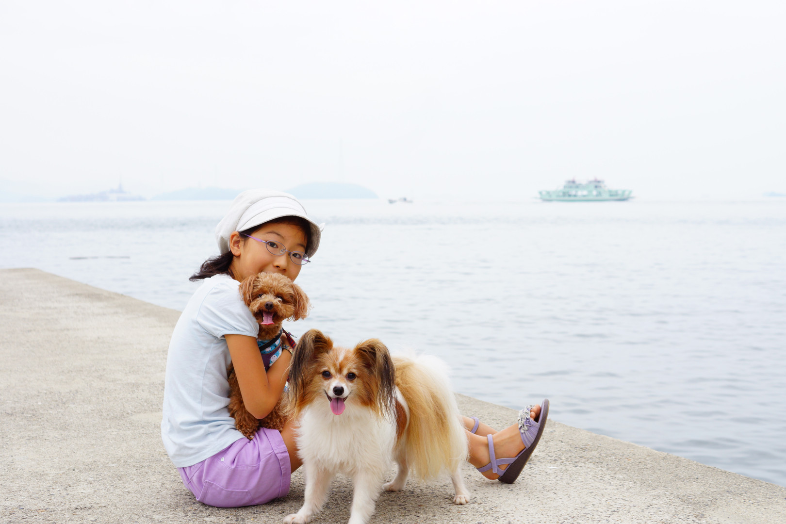 2年前の同じ海で。 プリンちゃんの足元切れちゃって、本当はボツ写真だけど、 全員こちらに顔を向けてる写真はこれ一枚・゚・(ノ∀`;)・゚・