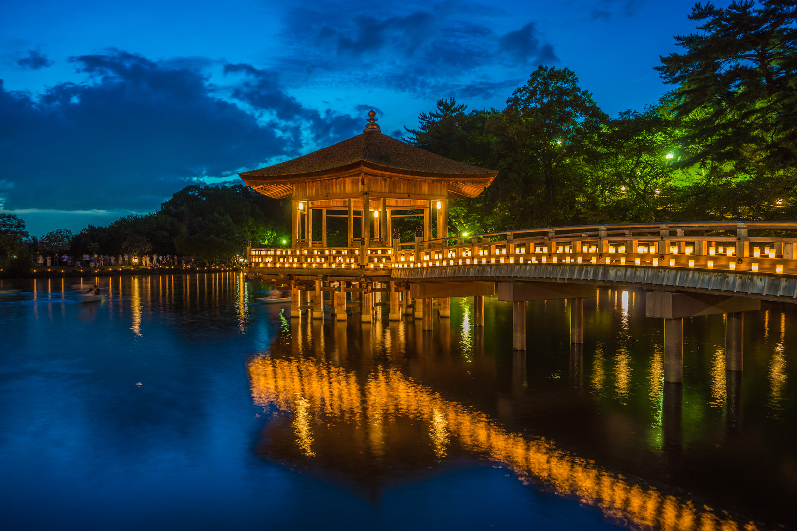 毎年、お盆の時期に奈良で開催される燈花会に行ってきました! 水面に映る浮見堂がなんとも幻想的です。