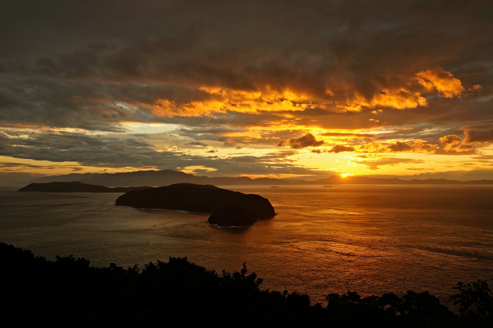 台風が日本海に抜けた夕方の紀淡海峡です。 この数時間前まで強烈な暴風状態でした。 現地への歩道では路面が見えないくらい枝葉が落ちてました。
