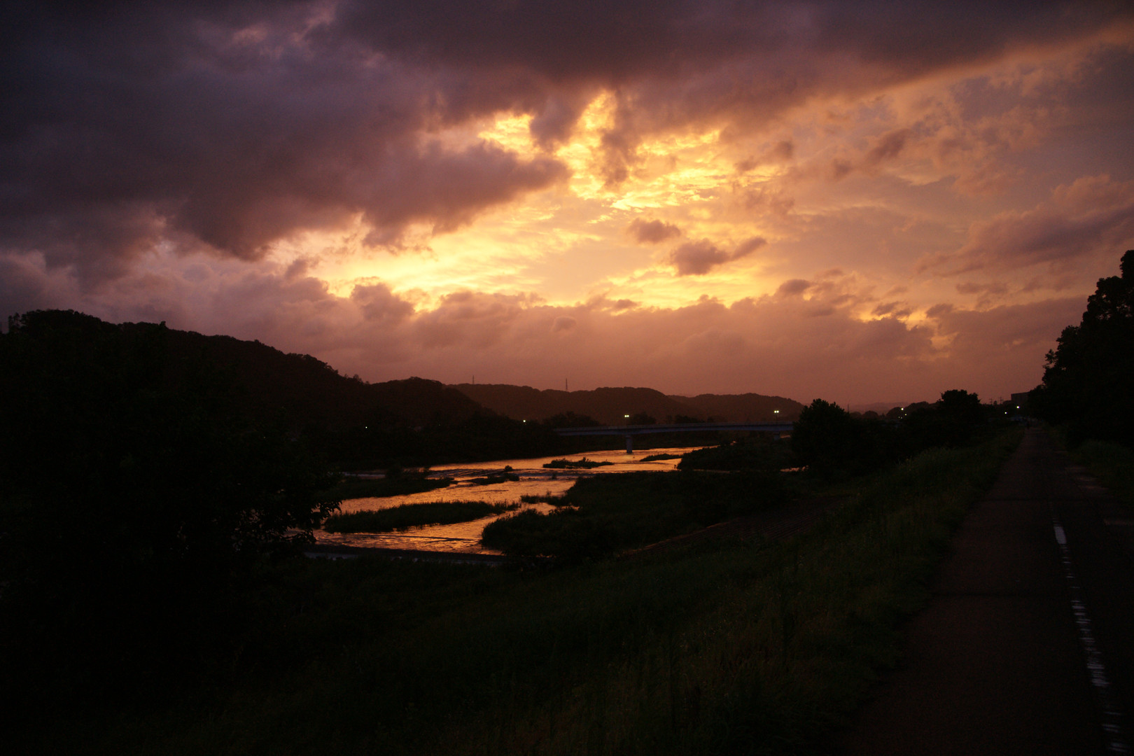 大雨が過ぎた日の夕焼けは赤くはなく、黄色でした