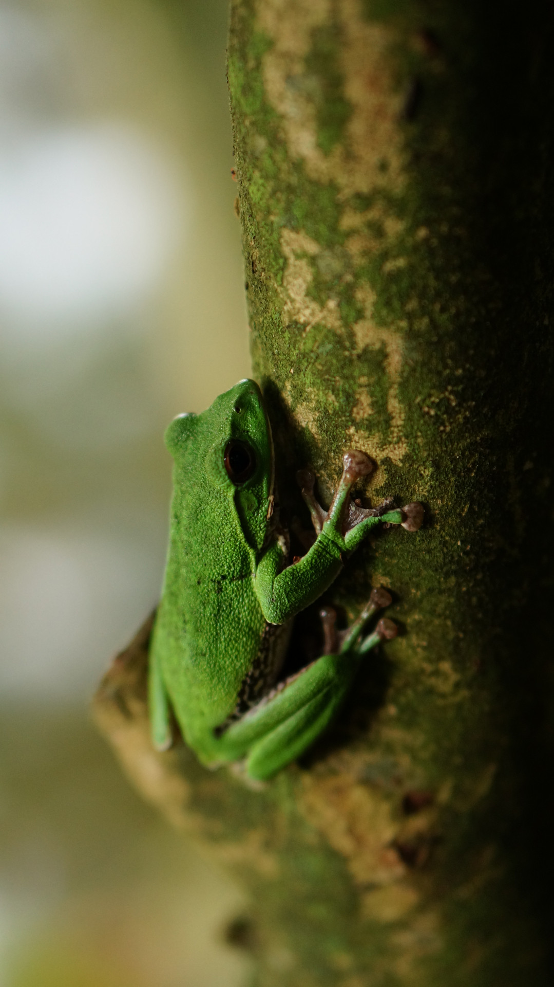 森の守護神とも言えそうなモリアオガエルさまをぱしゃりと一枚。 毎年、近くの神社の境内にある池で産卵を見かけますが、例年に比べ産卵の時期が遅く、気がかかりでしたが、無事に産卵を終えているのを見つけ、ホッとしました。