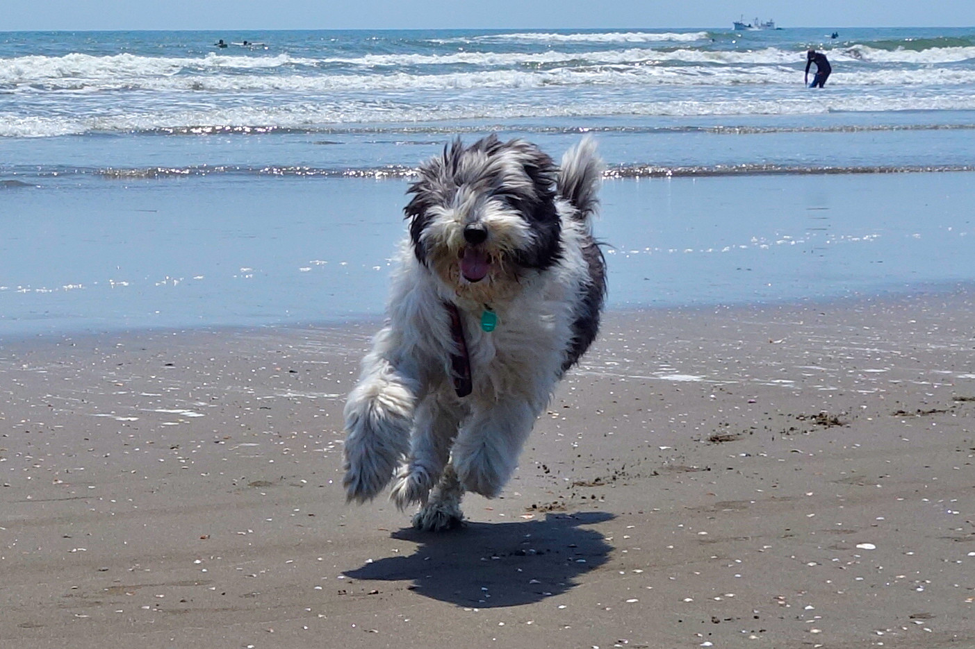 春の九十九里浜を元気に走りまわるワンコ。