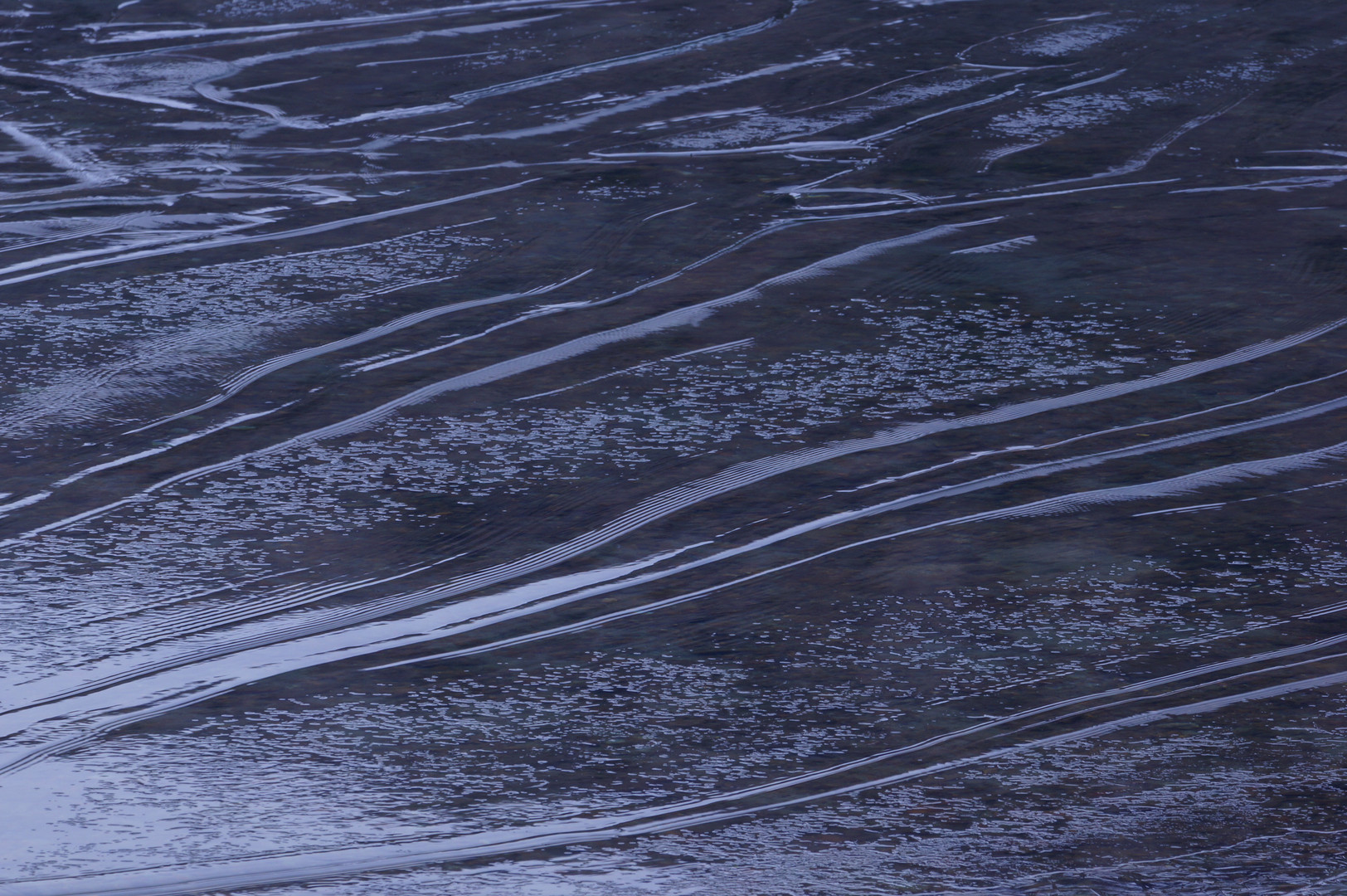 湖上を覆い尽くす薄氷が少しづつ溶けはじめ、波にゆられ造られた模様。