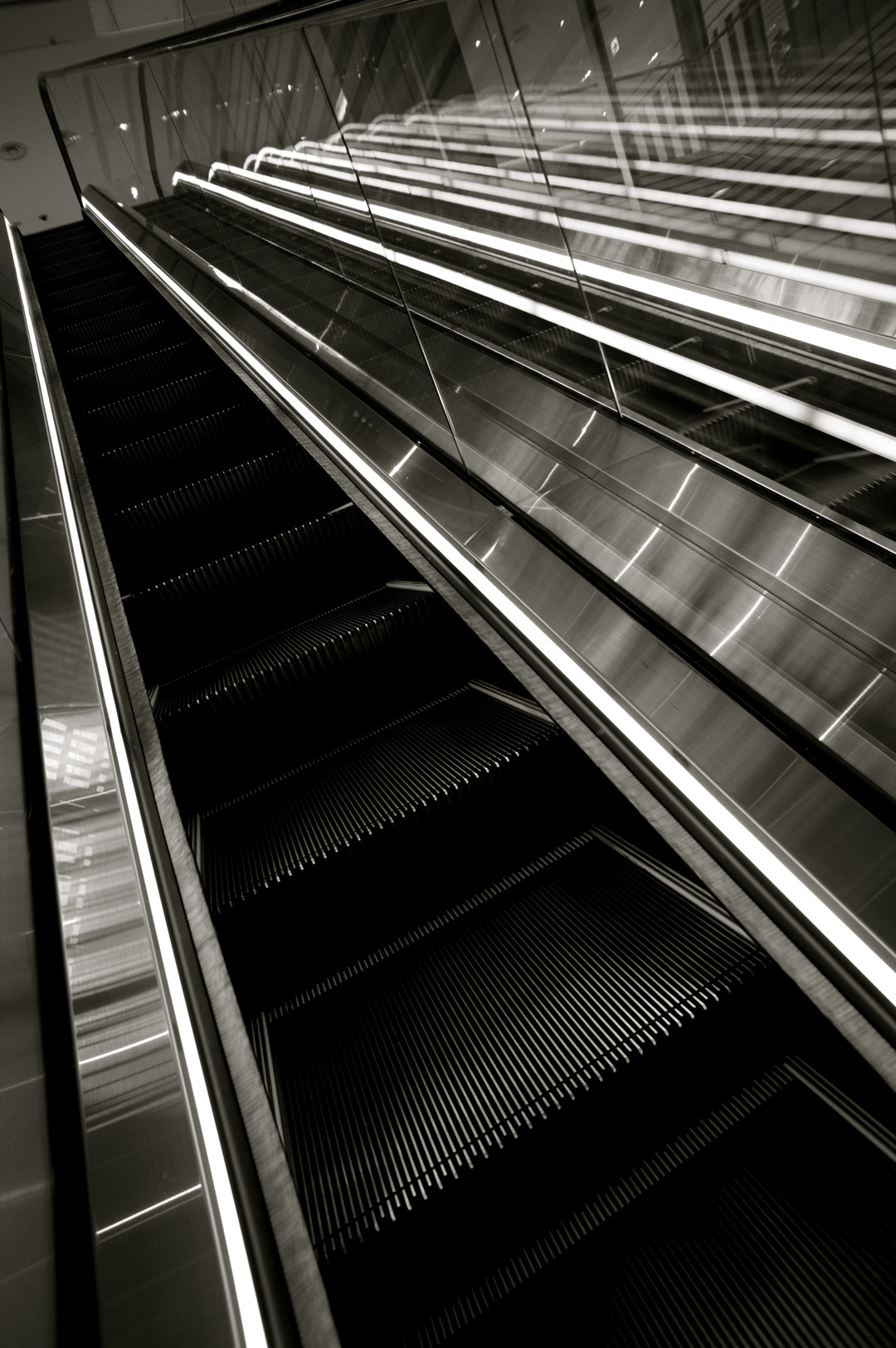 エスカレーター横の光がガラスに写ってキレイだったので撮ってみました(・ω・)