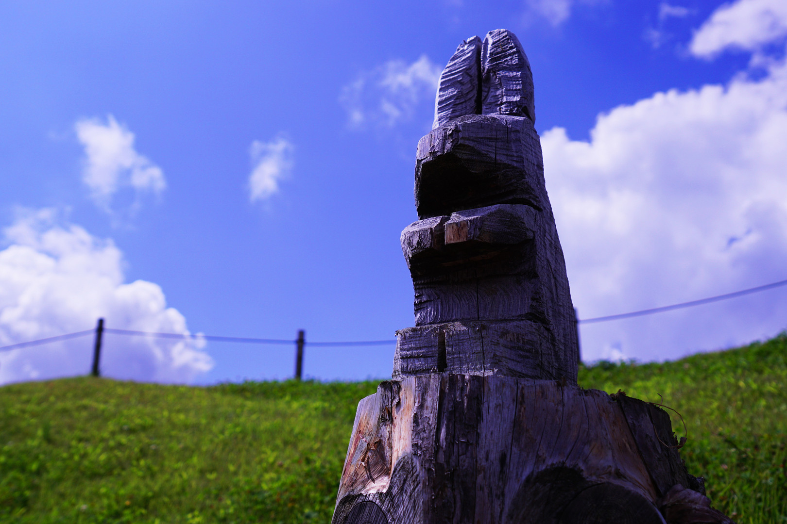 サービスエリアにあったウサギの切り株です。 撮る角度を変えただけですが、まるでウサギの向いてる方向が変わったように見えますね^^