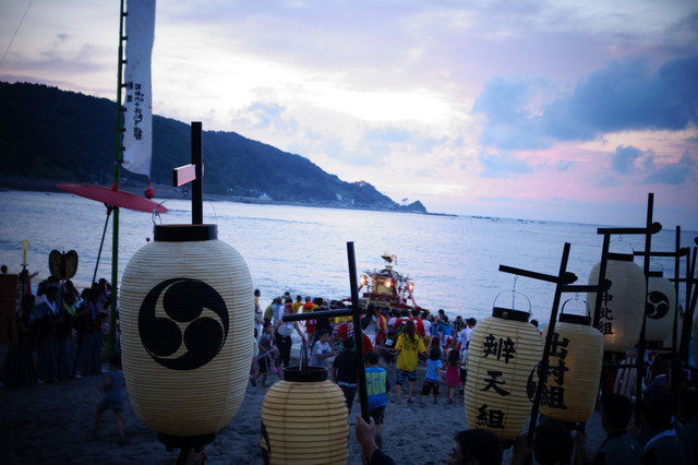 この祭りのクライマックスは、海の中で暴れまわる神輿!大人たちが神輿を担いで海に入り、砂浜にいる子どもたちと綱引きをします!綱引きしている時間が長いほど、その後の一年は大漁になるのだそうな。