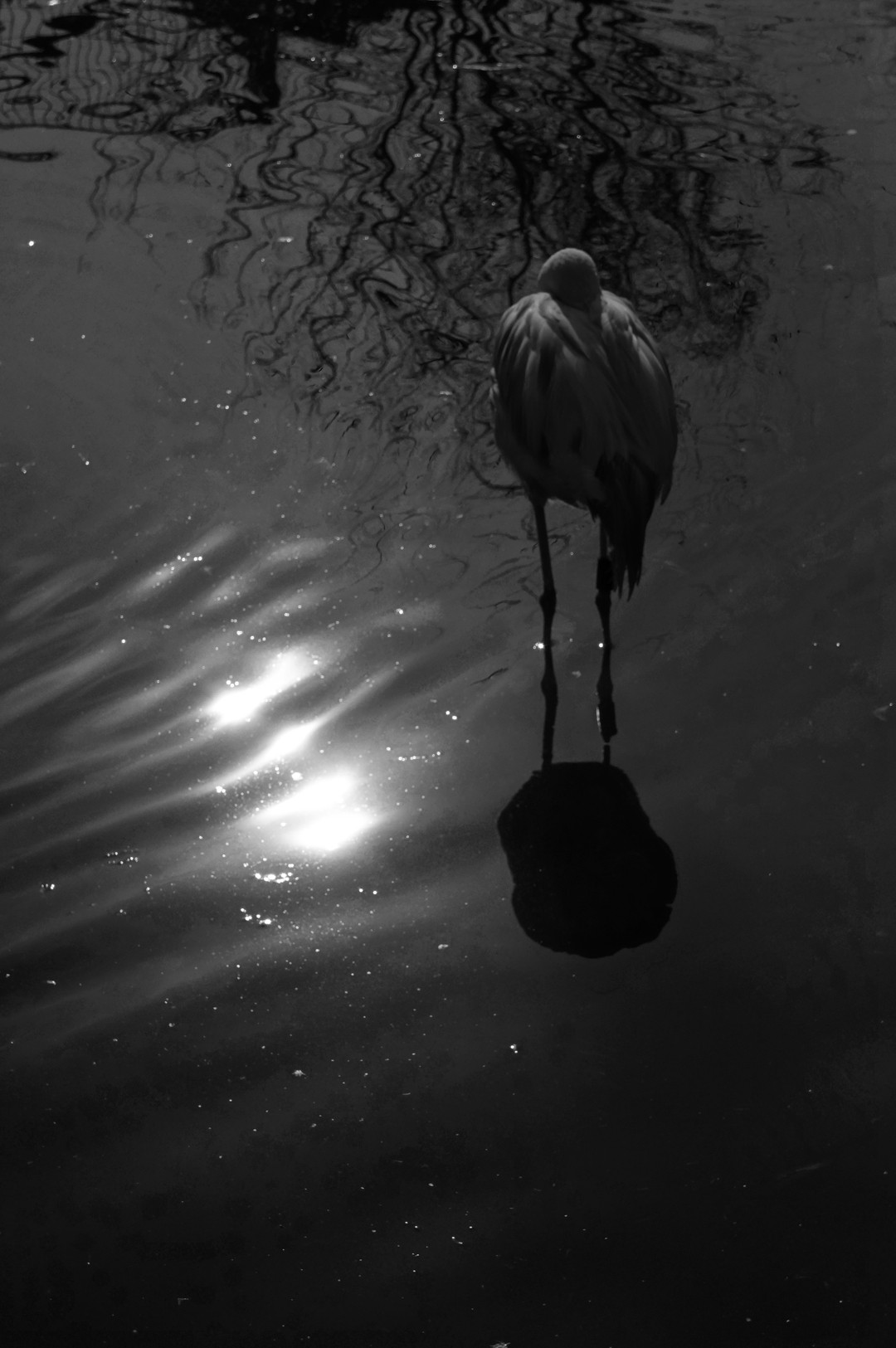 リッチモノトーンで撮影。 動きの少ない被写体でしたので情景に動きのある条件を探して、太陽の映り込みと水面に波が立つのを待って撮影しました。
