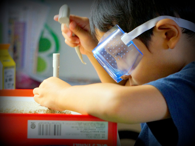 誕生日祝いで化石発掘のおもちゃを貰いました。結構本格的で息子は考古学者になりきっている模様。。