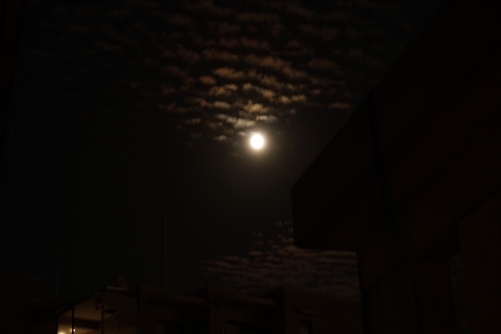 三脚無しで満月の撮影に挑戦。 うろこ雲もきれいですが、やっぱり手振れが…。