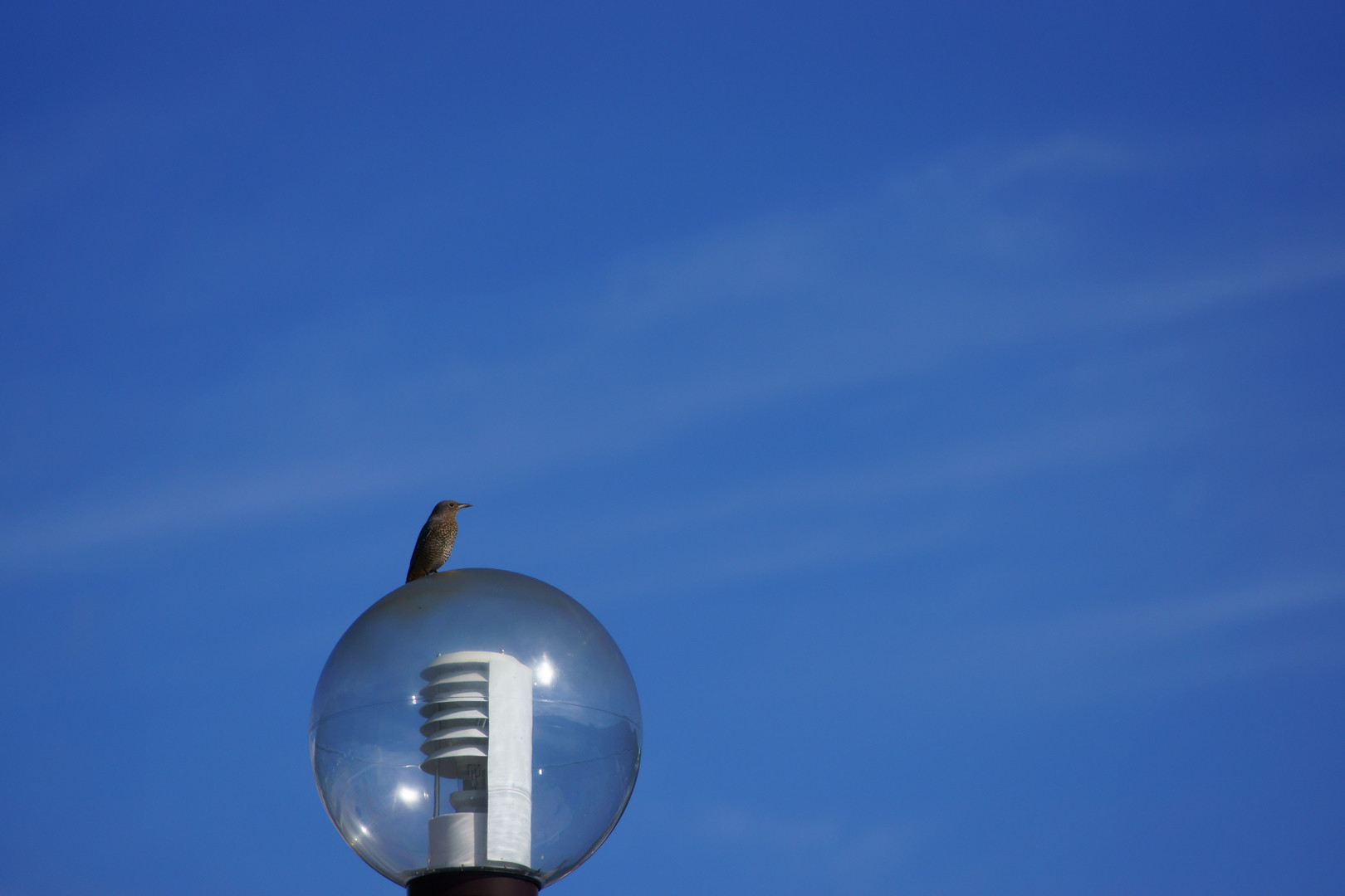 今朝、仕事開始までの待ち時間に駐車場の照明にいた鳥さんです。 仕事に勿体無いくらいいい天気でしたね。 (ちなみにこの鳥さん何処の誰だかさっぱり知りません。スズメやカラスでないことくらいしか判りません。悪しからず。)