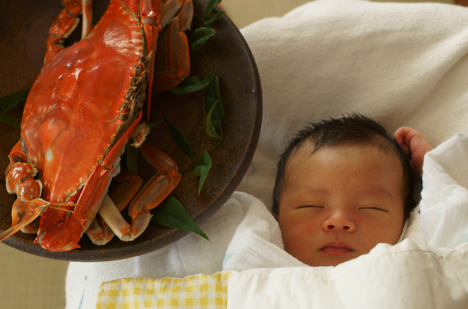 妻の実家から,みんながお祝いに来てくれました~とても良い型の渡り蟹をお祝いに持ってきてくれました~HAL君のおかげでおいしい渡り蟹をたっぷりといただけました~!!渡り蟹最高!! 出産の時のむくみがなくなって,少し涼しげな感じの顔になってきました~!!