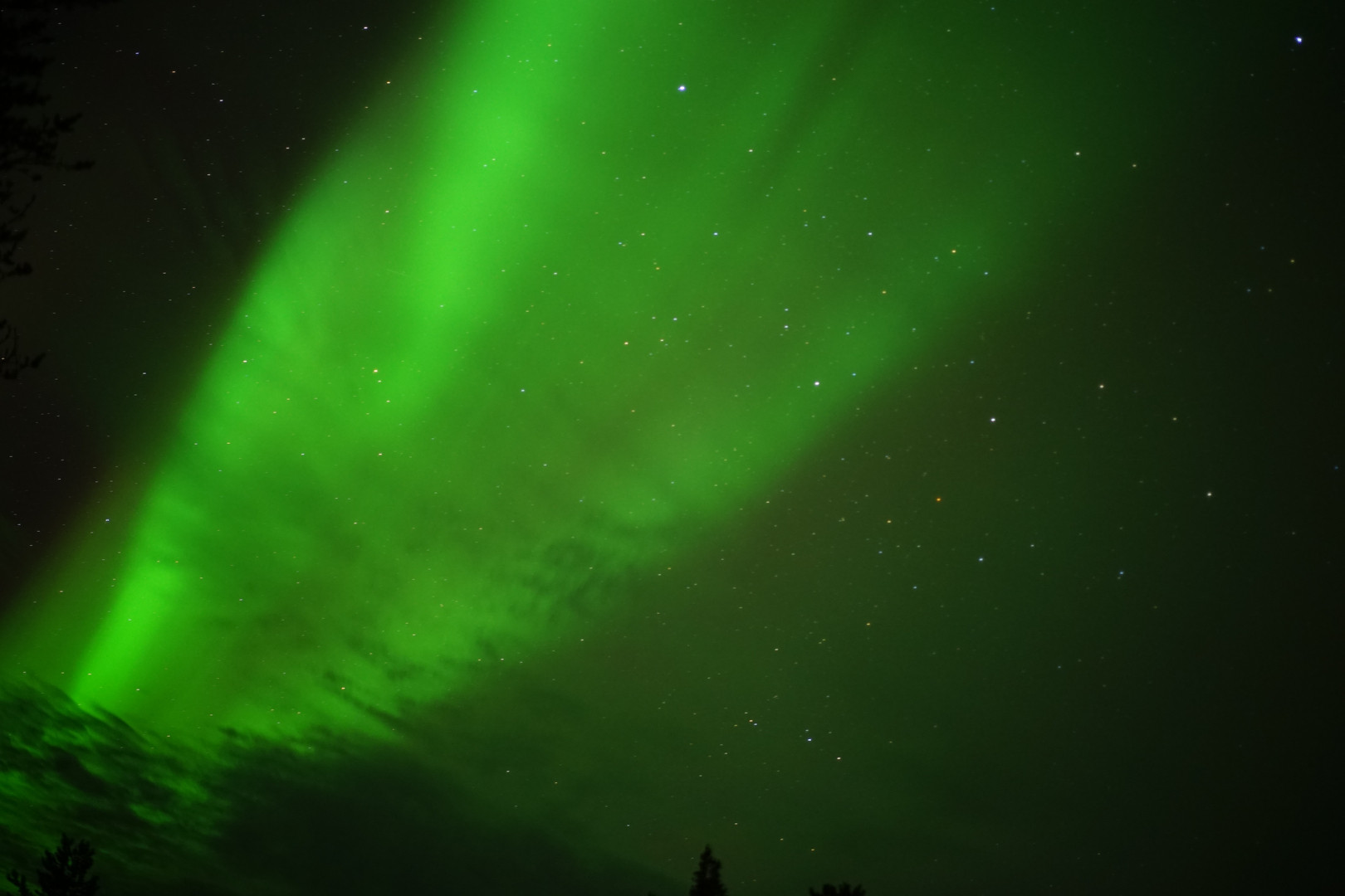 念願の初オーロラ。 場所を選べば、夏秋でもオーロラが見えるんですね。 本格的なオーロラ撮影に、設定を試行錯誤しながら撮影した一枚。