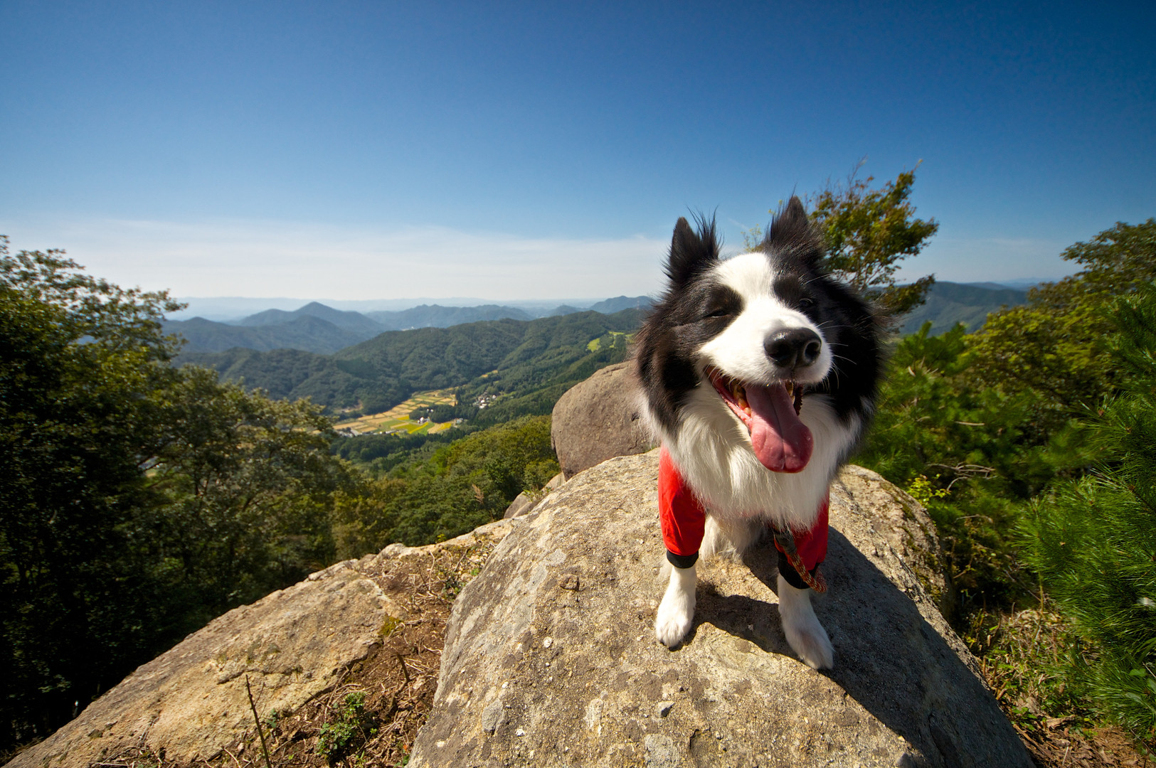 自ら崖っぷちの岩に飛び乗っちゃったりするのではらはらしますが、気持ちのいい風にご機嫌のワンコです。