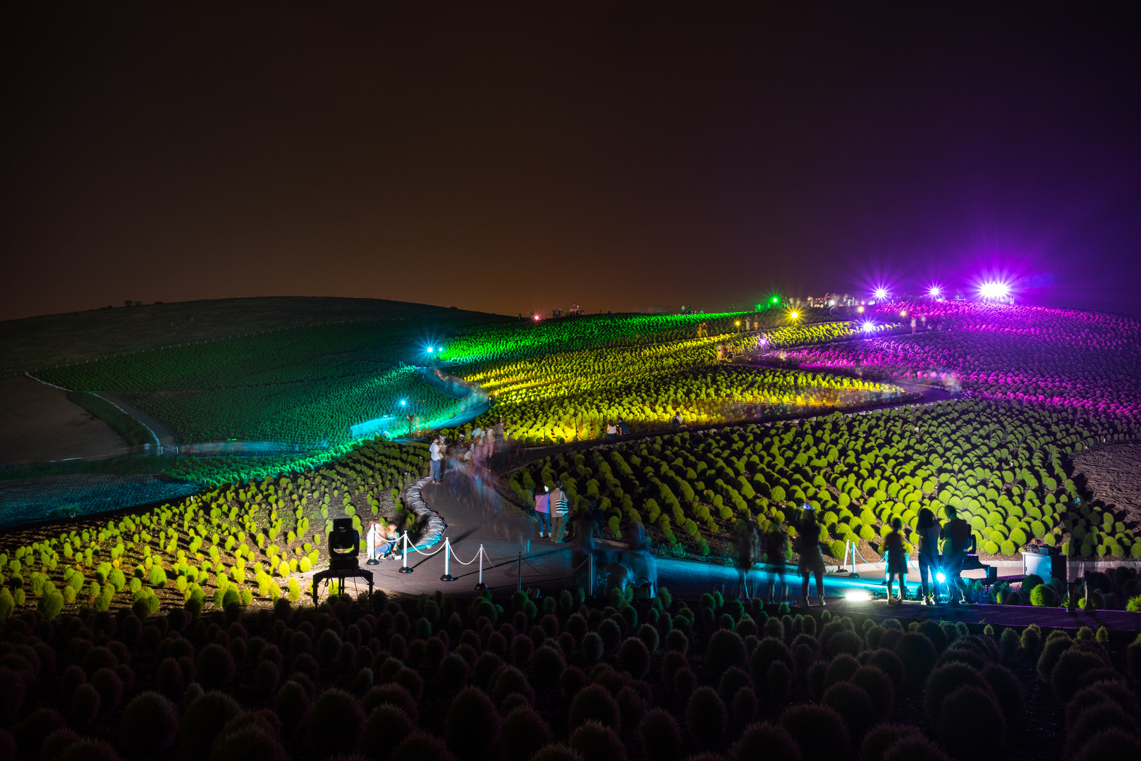 夜の海浜公園、コキアのライトアップです。
