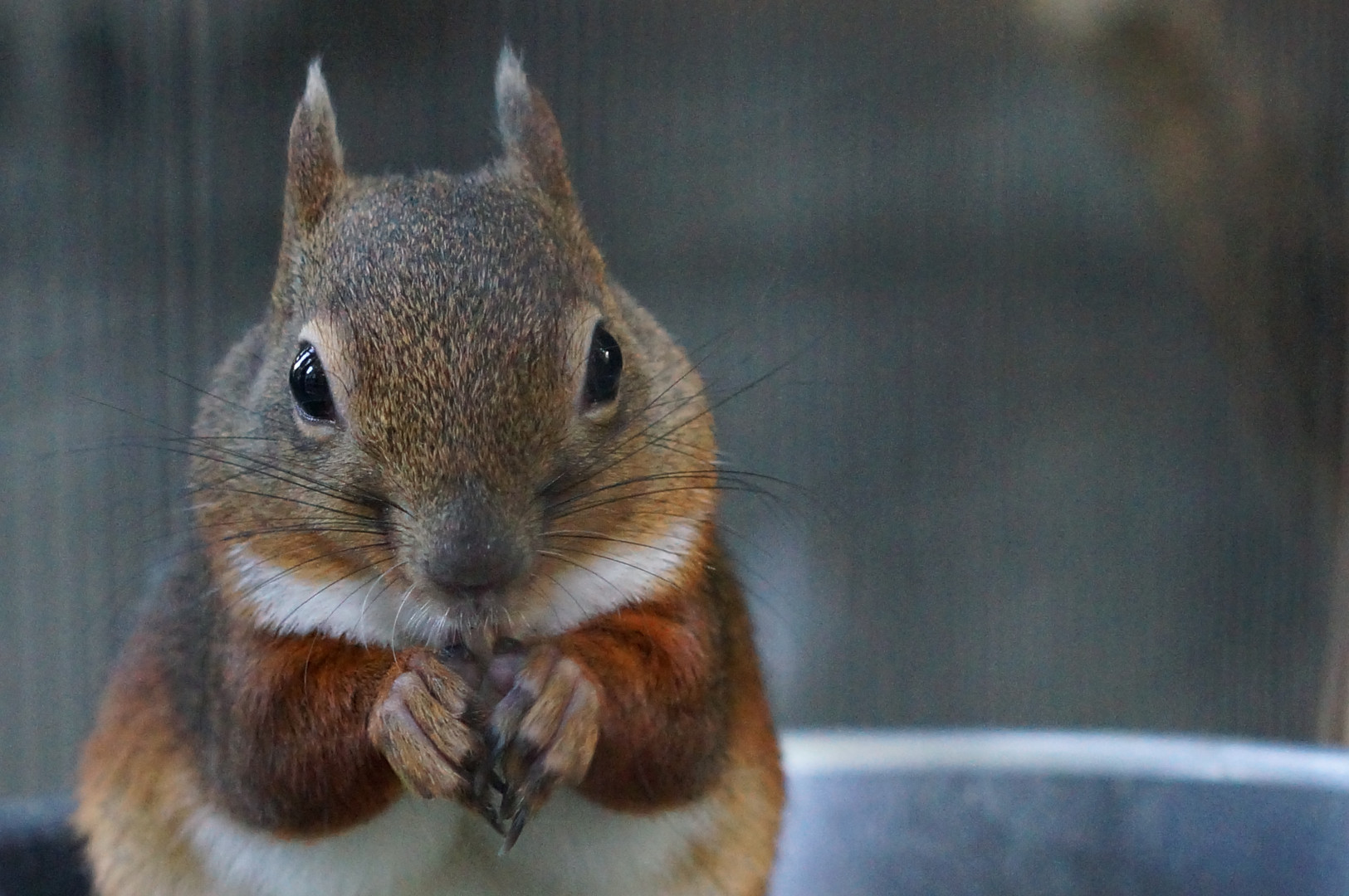 上野動物園にて。 お食事中の二ホンリスさんを発見! ほっぺにたくさん蓄えてます(^^)