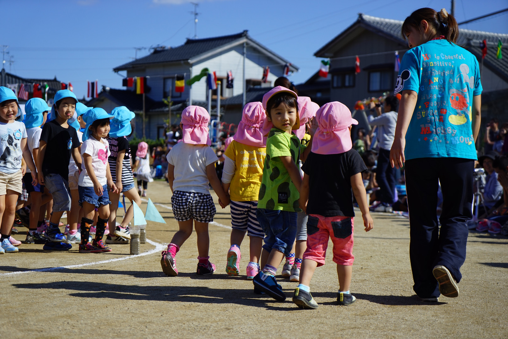 入場行進中、繰り返し振り返っていました。