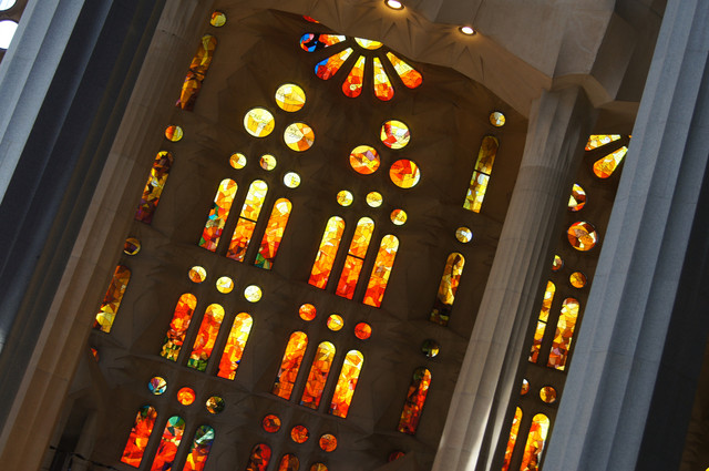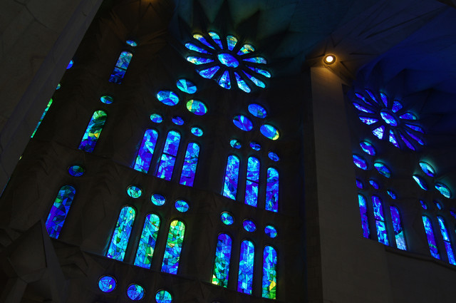 バルセロナ(スペイン)のサクラダ・ファミリア聖堂の採光が美しかったので撮りました。