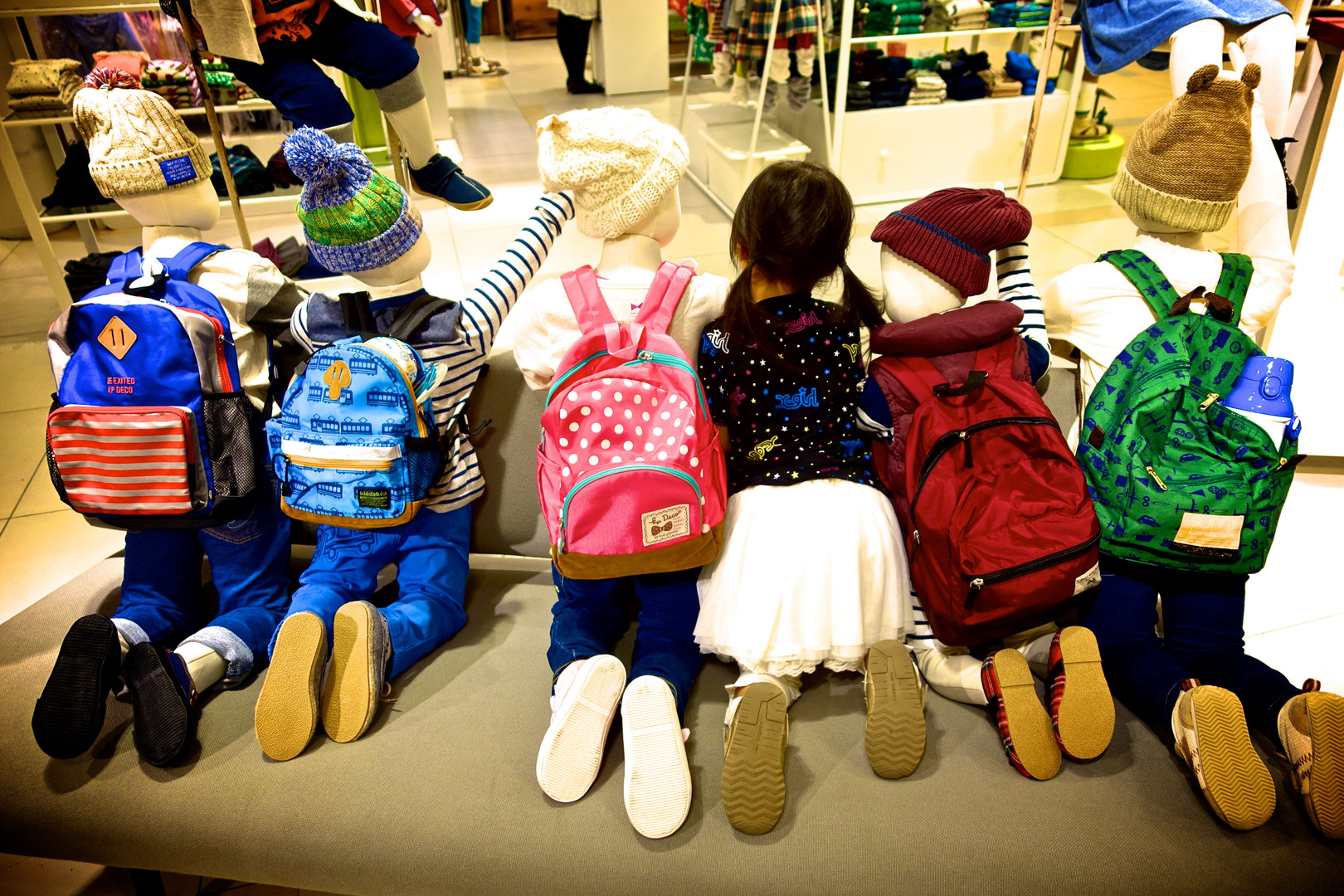 お店のディスプレイにまぎれこんでいる娘。