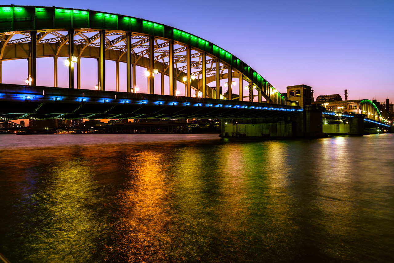 製品情報>My Sony>αcafe>水面を染める夕暮れの勝鬨橋(moyuさん)