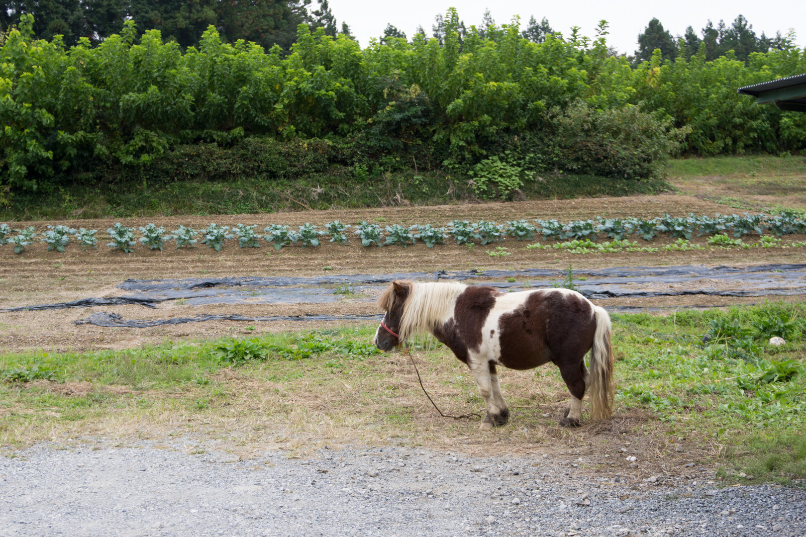 歩いてる途中で見つけたポニー つながれているのかはわかりませんが、柵はありませんでした。