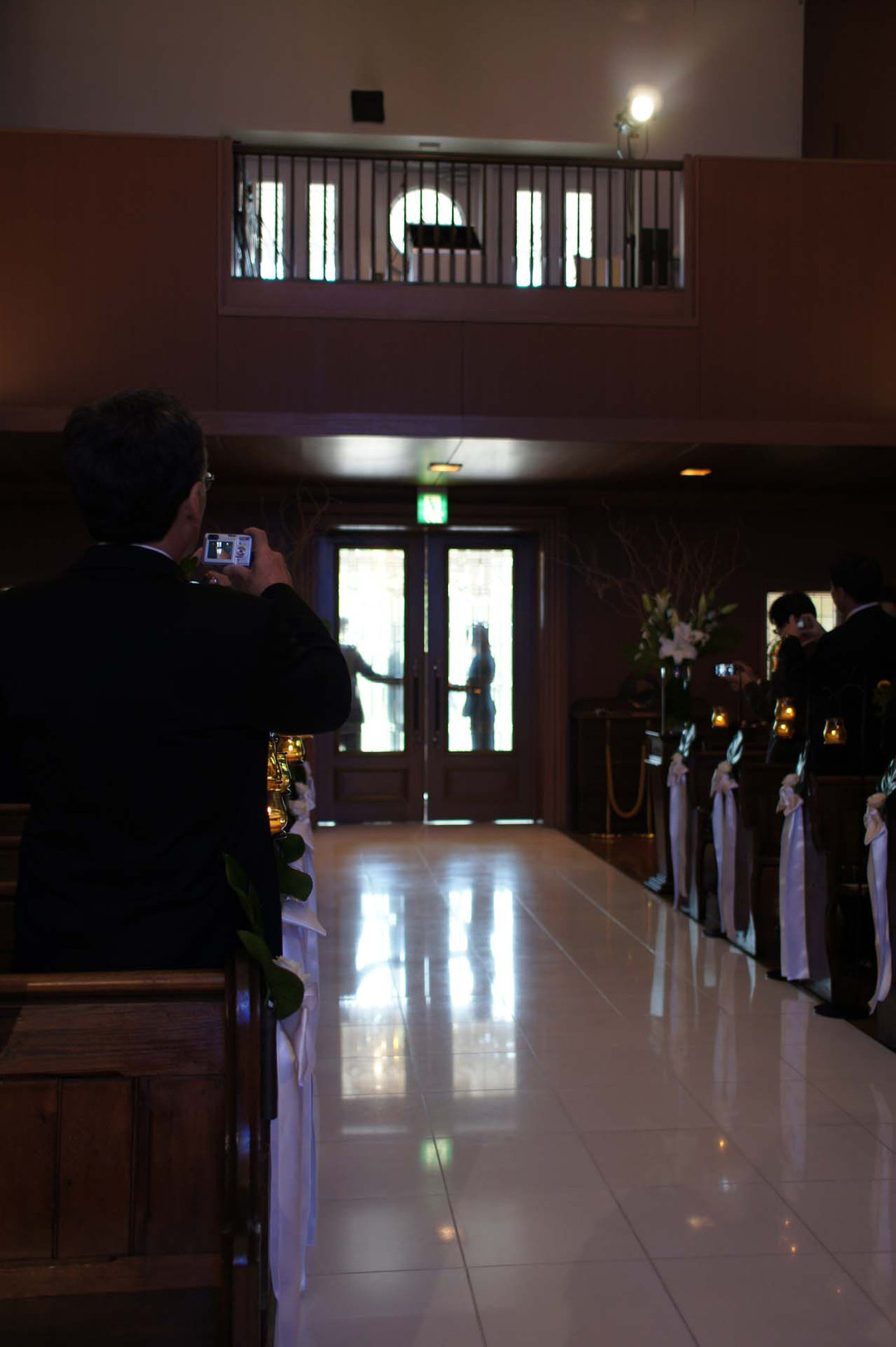 バージンロードの扉が。。。 正面には花嫁さんを待つ新婦さんが。 緊張する瞬間です。
