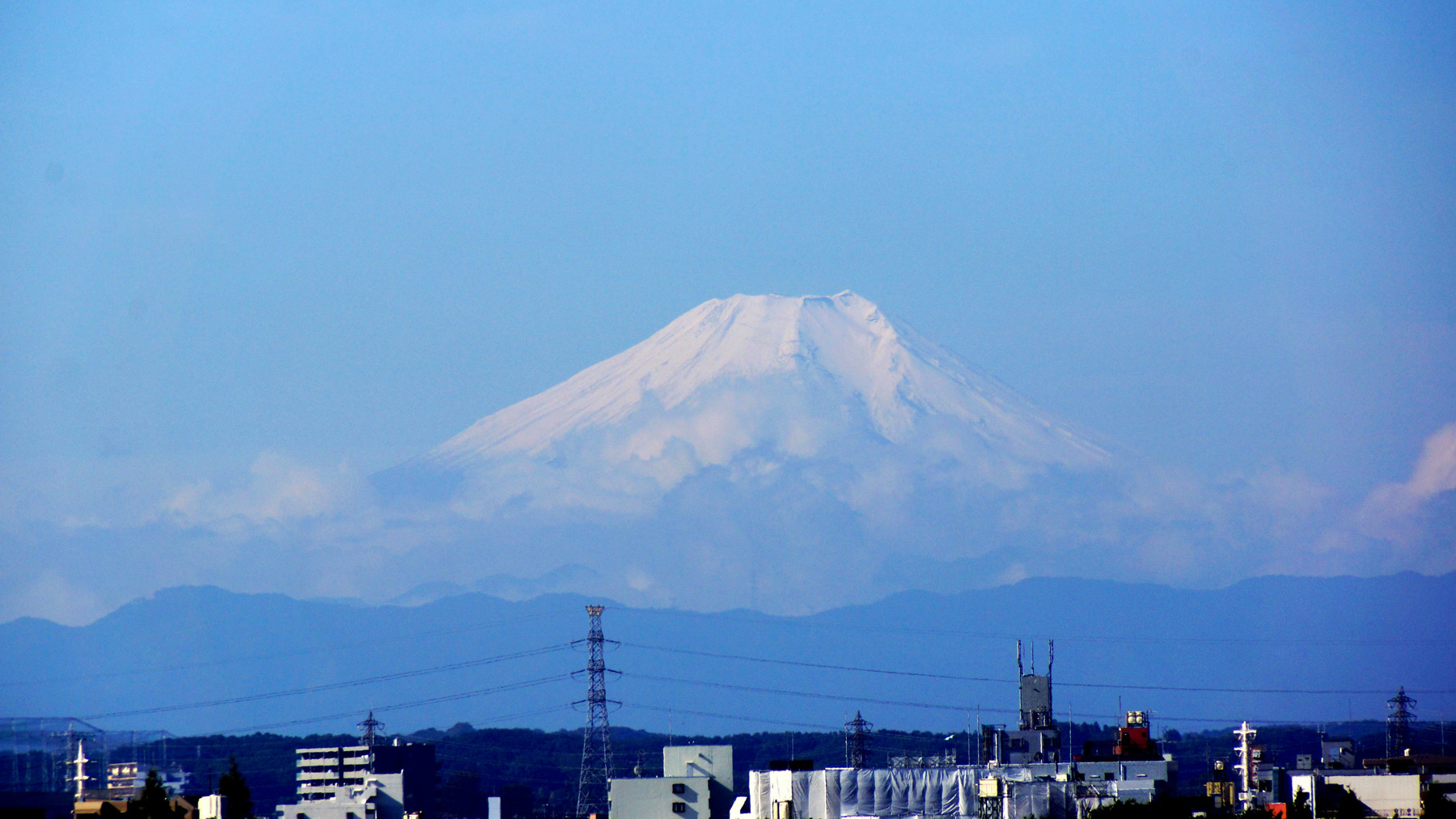 台風も過ぎ去り、快晴を期待していましたが、翌日も一日雨模様。更に翌日には、寒気も南下して高い山では冬の様相に。今朝は朝から晴れて、富士山が冬の様相でした。しかも、かなりの雪のようで、五合目くらいまで降雪があったようです。